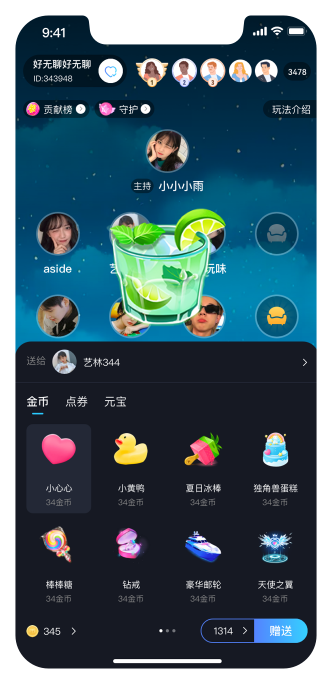 观众可指定席位打赏礼物,可选择礼物数量赠送;丰富的礼物动效上线即用。
