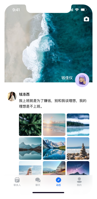 支持发表文字、图片、视频动态帖子,支持设置查看权限,回复点赞帖子。
