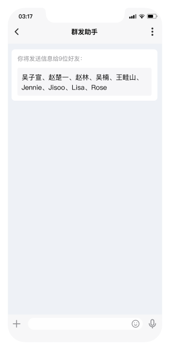 选择好友一键发布消息,群发消息单独存储,群发助手支持启用