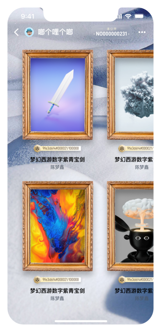 陈列展厅展示用户的数字藏品收藏,用户可以设置馆藏背景样式。